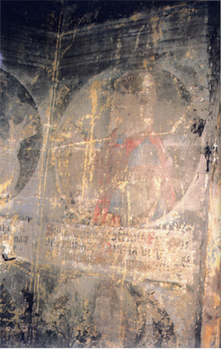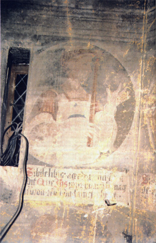 restes de cette peinture se voient encore près de la porte d'entrée. Il fit représenter dans la chapelle de St